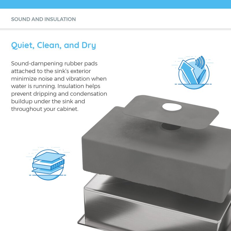 The Meridian 880*450mm Drop-in Kitchen Sink is 0.8mm 304 stainless steel with a brushed finish with highlight rim and 3mm sound deadening pads. Superior undercoating for added sound insulation fits 500mm minimum base cabinet width. The rim of the sink sits on the countertop.It is with one functional rubbish bin, one knife shelf, two hole with cover for faucet and soap dispenser.